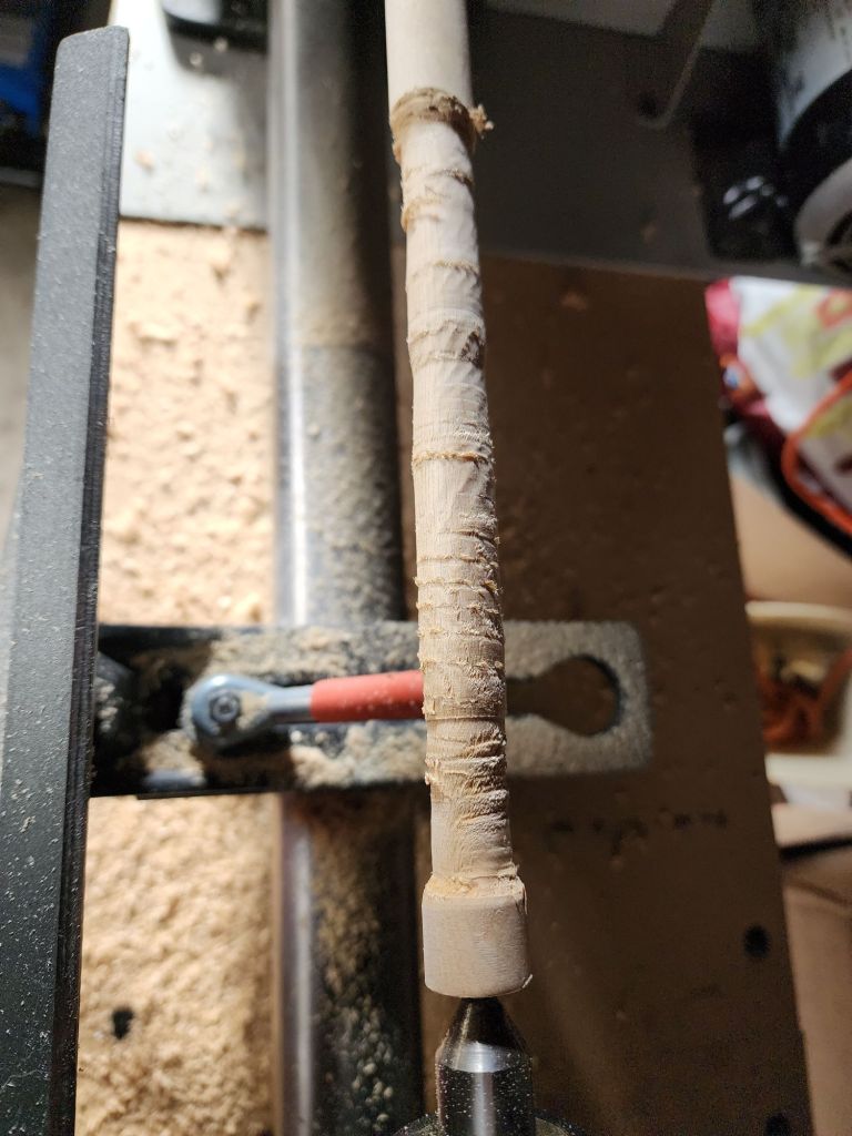 Our next adventure was getting a lathe! We found one just perfect for our purposes used about an hour away from us. It came hardly used with all the tools. And so I began playing with it! We have a growing number of fiber tool experiments for sale on etsy. And we updated our Spin Like a Viking kit with slightly thicker and more hardy spindles, and the distaffs are in much better shape being lathe turned instead of quickly hand carved. This middle photo is a phang or Fong spindle, in a shape known as Goddess due to the hour glass shape in the middle. They’re just as much fun to use as they are to make!