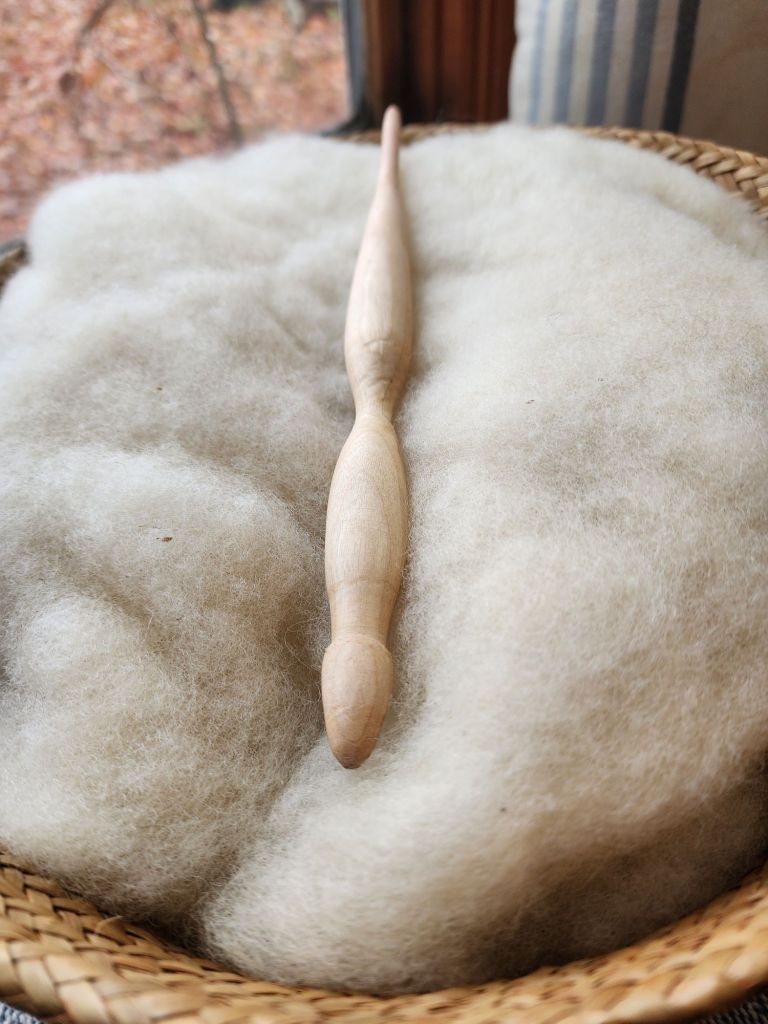 But I did get into a little routine with spinning. Mostly what I have been doing is spindle-and-whorl spinning and then chain plying with the great wheel. Which is helping me not end up with tons of full spindles waiting to be plied like I did in the summer.